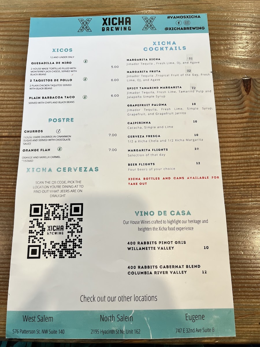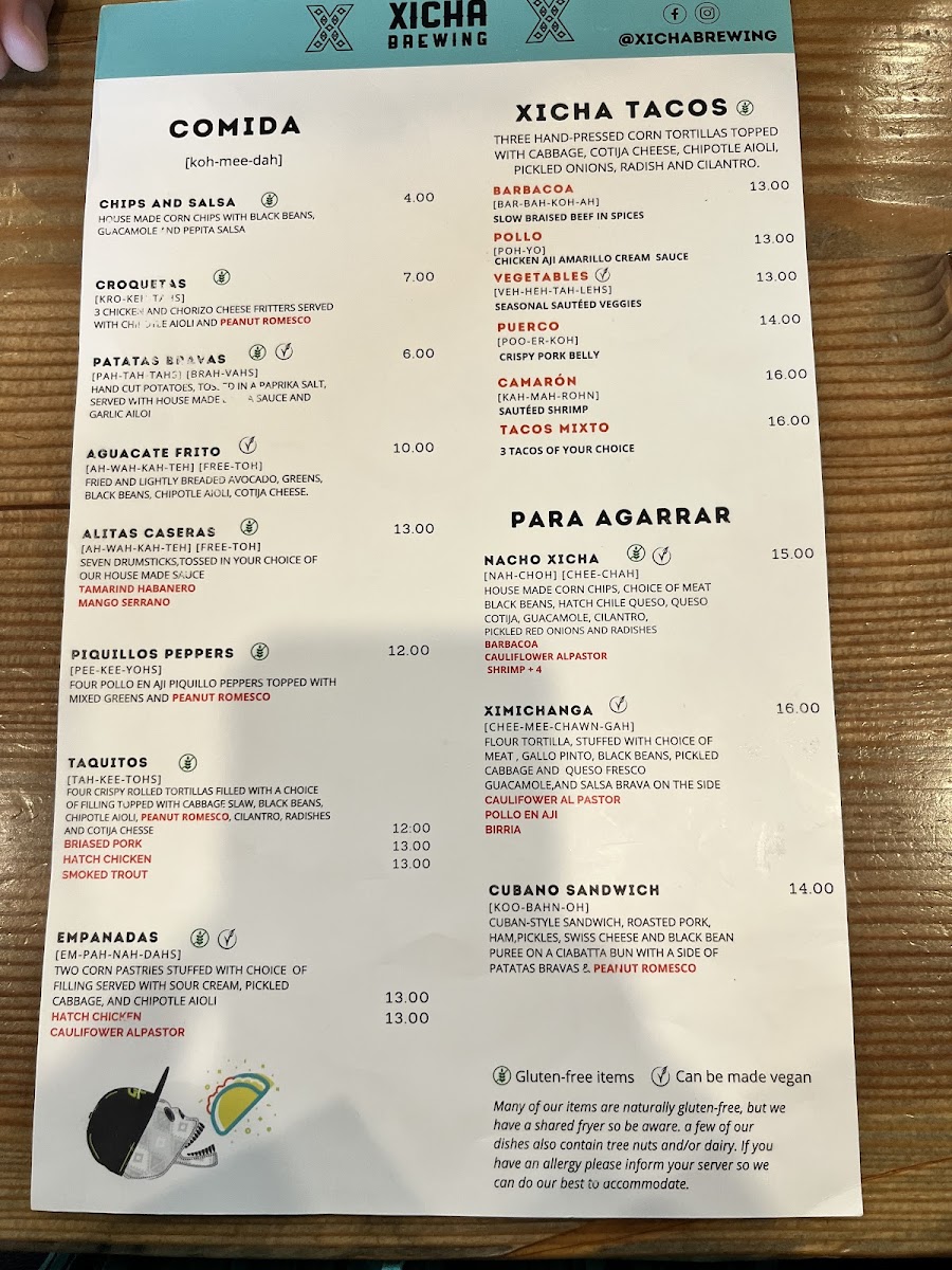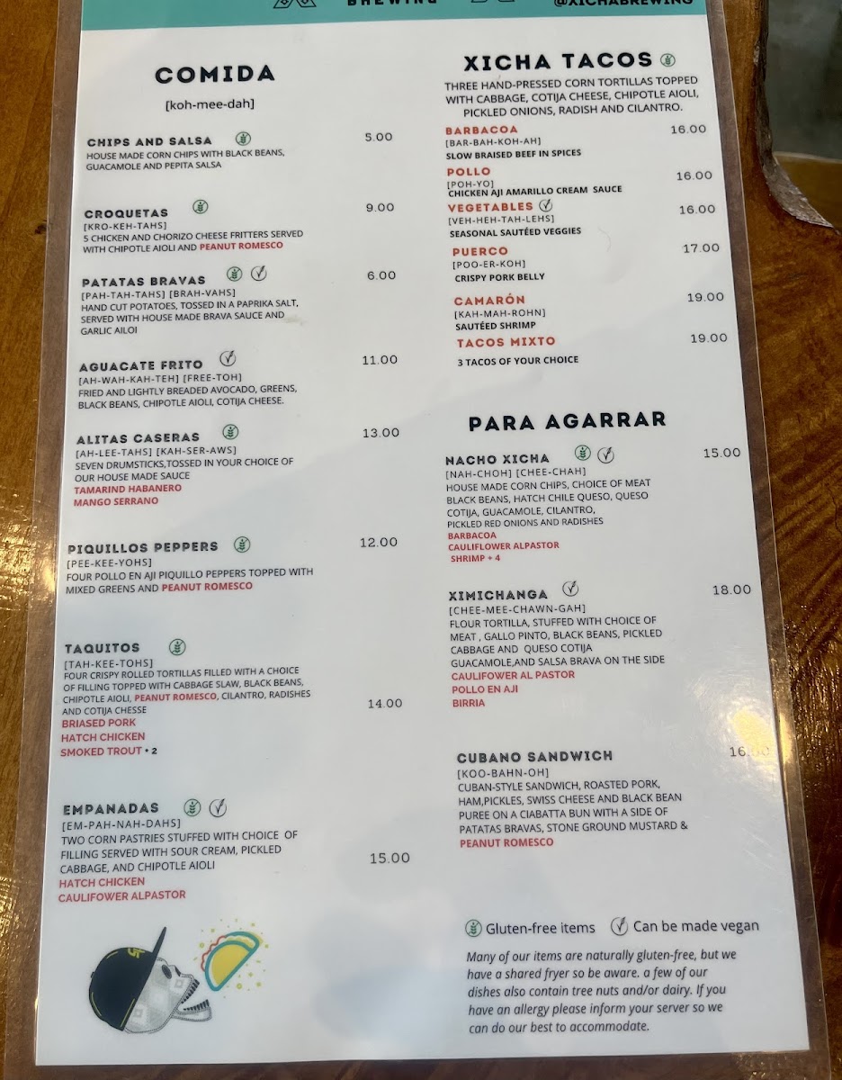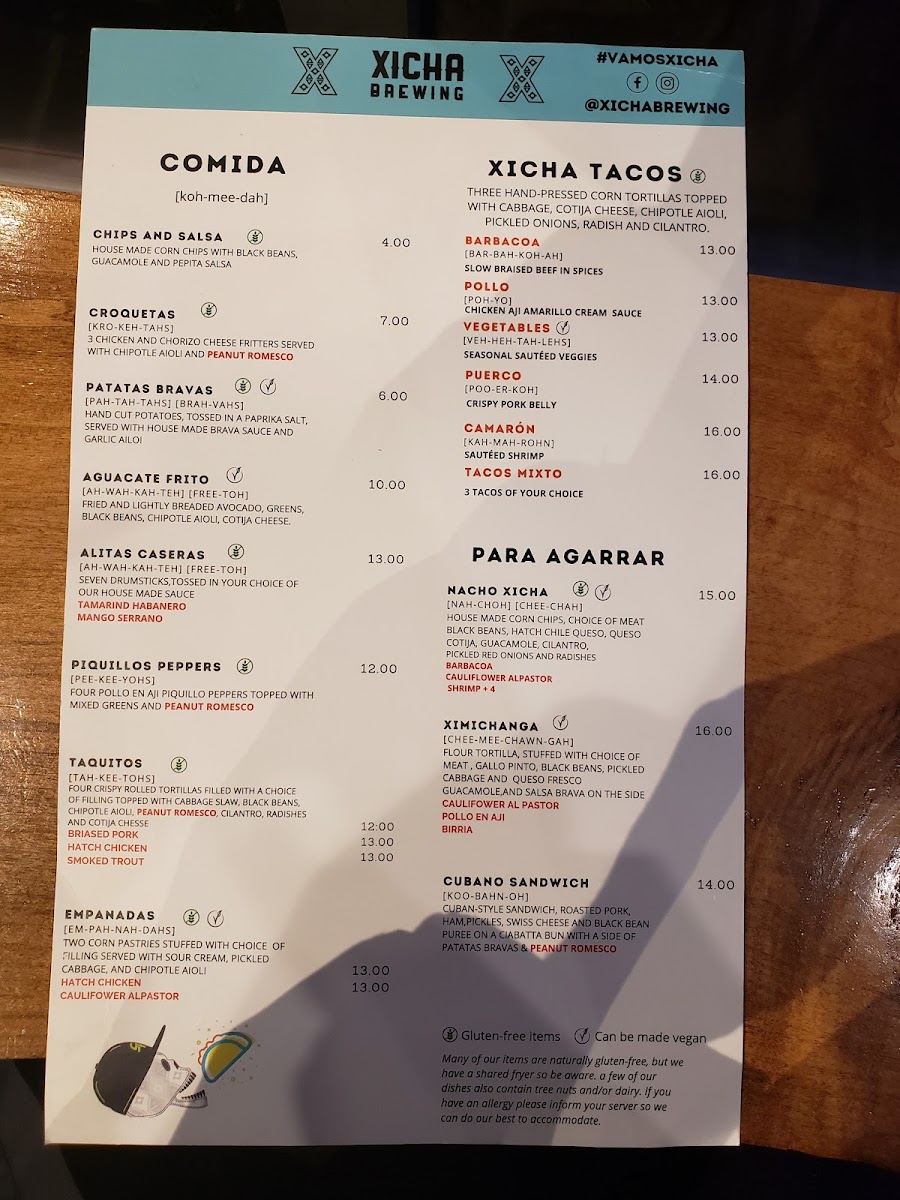 Welcome to Xicha Brewing - Eugene, where vibrant flavors meet a lively atmosphere! Nestled in Eugene, Oregon, this culinary gem presents a delightful menu that showcases classic Latin-inspired dishes. Start with Chips y Salsa, featuring corn tortilla chips paired perfectly with guacamole and pepita salsa. Don't miss the Patatas Bravas, hand-cut potatoes served with a spicy brava sauce, offering a perfect crunch. For a heartier indulgence, try the Croquetas, irresistible chicken and chorizo fritters accompanied by chipotle aioli.
